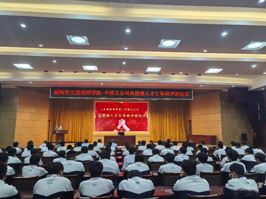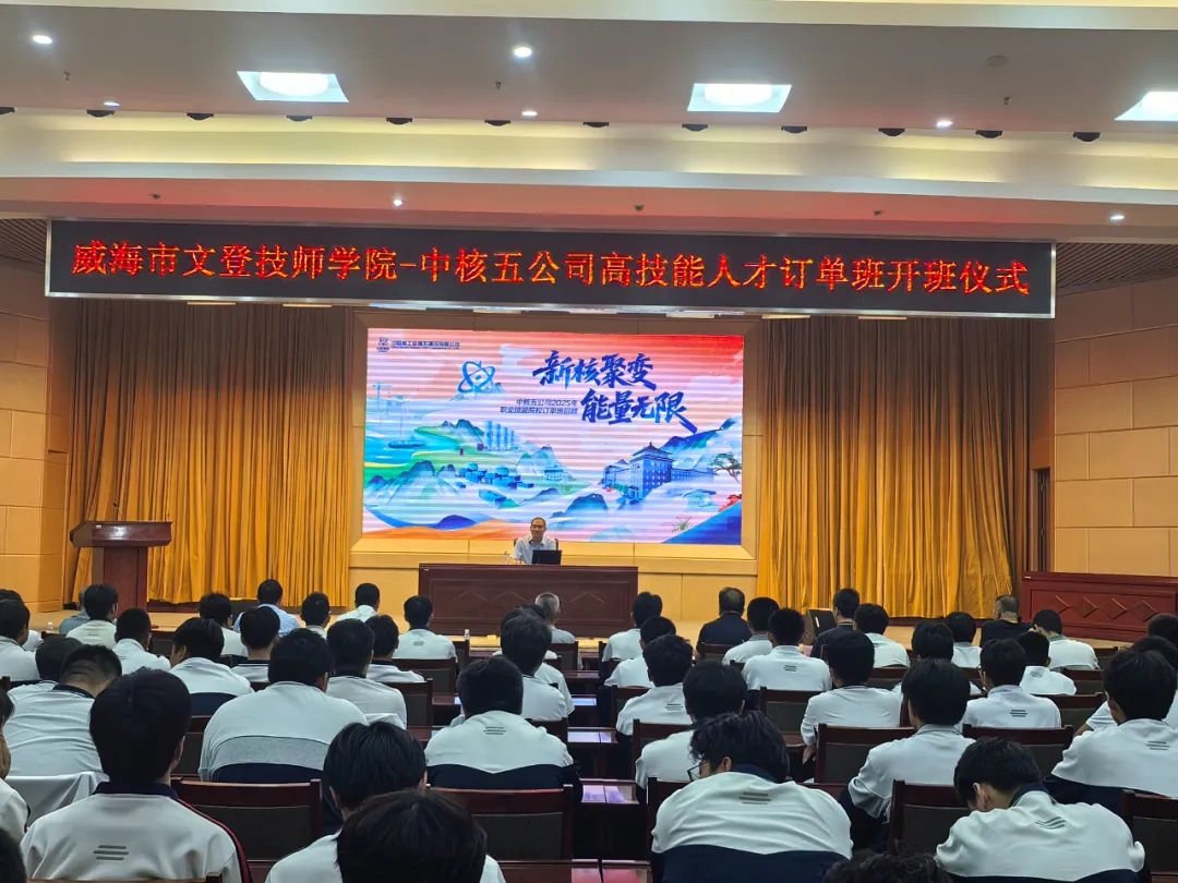 9月30日,学校学术报告厅内座无虚席,我校与中国核工业第五建设有限公司(以下简称中核五公司)联合举办的高技能人才订单班开班仪式隆重举行。中核五公司石岛湾项目部行政经理周润海、辅助系统分公司施工管理部副经理方卫军、工程研究院培训中心主任刘增峰等企业代表,学院党委委员、副院长梁向东,相关处室、系部负责人及焊接专业全体师生共同见证这一产教融合的重要时刻。 强强联合 打造高技能人才培养新高地 主持人周文静详细介绍了中核五公司在核电建设领域的行业领先地位。梁向东在致辞中强调:此次订单班的开设,是校企双方响应国家“十四五”技能人才培养规划的实质性举措,将为焊接技术专业学生提供“入学即入企”的成长通道。 企业进校园 点燃学子职业梦想 周润海为师生详细介绍了中核五公司的发展历程、企业文化以及员工待遇等,阐释高技能人才在高端装备制造中的核心价值。他特别提到:订单班学员将参与公司“青年工匠培养计划”,享受专项奖学金和职业晋升绿色通道。 严选英才 面试选拔与定制化培养 开班仪式结束后,焊接专业高级工、预备技师学段的30余名学生参加了企业组织的面试选拔。企业评审团从专业技能、职业素养等维度进行综合考评,最终入选学员将进入定制化培养阶段,学习核级焊接工艺等特色课程。 此次订单班开班,是我校深化产教融合的又一里程碑。订单班采用“双导师制”培养模式,课程体系由校企共同开发,学生毕业后可直接进入中核五公司石岛湾项目部等国家重点工程就业,实现教育链、人才链与产业链的有机衔接。