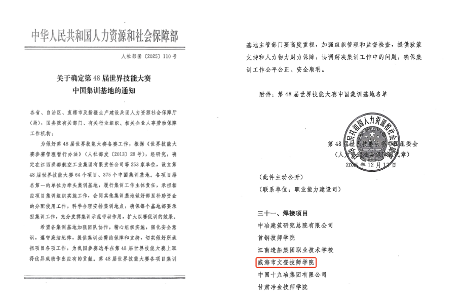 近日,中华人民共和国人力资源和社会保障部正式发布《关于确定第48届世界技能大赛中国集训基地的通知》(人社部函〔2025〕110号),我校继成功入选第46届、第47届集训基地之后,连续第三届获此殊荣,充分彰显了学校在该项目上全国一流的训练水平和人才培养的持续领先地位。