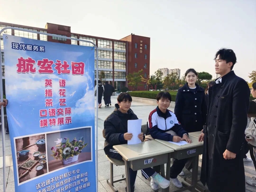为丰富校园生活、激发学习兴趣,促进个性发展、塑造健全人格,形成有利于学生健康成长的校园特色文化,10月28日下午,我校结合现有资源,在学校中心广场组织开展“社团纳新节”,学校学子可根据自己的兴趣爱好和个性特长选择社团。 招新现场人头攒动,热闹非凡。各路“英雄”满怀“新”喜,百花齐放,“社”彩纷呈,吸引众多同学驻足观看、询问。一场没有硝烟的“战争”就此展开,一起来感受社团现场的火热氛围吧! 非遗文化类社团 舞狮、剪纸、中国鼓、手工绣、面塑等非遗社团,向同学们展示了传统技艺的魅力,传承中华传统文化。 科技创新类社团 无人机、AI人工智能、电脑创客等科技创新类社团,用前沿科技吸引学生,用科技改变生活。 艺术兴趣类社团 合唱、舞蹈、绘画等艺术兴趣类社团,用艺术表演展现青春风采,提升学生艺体素养。 心理健康类社团 心理健康、曼陀罗绘画、心理情景剧等心理健康类社团,用各类心理健康知识浸润学生的心灵,助己助人。 专业技能类社团 单片机、航空服务等专业技能社团,用专业知识点燃学生心中的技能梦,助力学生技能成才。 体育健身类社团 健美操、篮球、足球、羽毛球、健身等体育健身类社团,用运动激情点燃校园活力,提升学生体质。 文化宣传类社团 校园电视台、新媒体等文化宣传类社团,为学生提供学习的平台,让学生在活动过程中发挥自己的特长,提升个人能力。 社团活动丰富多彩,为同学们提供了展示自我、发展兴趣的平台,期待同学们在社团中继续绽放青春光彩。 此次社团纳新活动,不仅展现了同学们昂扬向上的精神风貌,表达了他们对自我成长的追求和渴望,也为学生个性化多元化成长提供了更广阔的舞台。相信各个社团一定会在新的学期,弘扬社团文化精神,并在这种精神的鼓舞与指引下锐意进取,勇于创新,绽放出更加夺目的光芒!